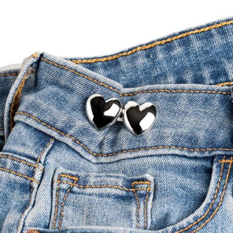 Upgrade your denim game with the Heart Fit Fixer Waist Adjuster, the cute and clever way to snatch your waist without sewing or belts. Designed to help your jeans, skirts, or shorts fit just right, these removable metal hearts add charm and customization to any outfit. Easy to use, small enough to fit in your pocket, and available in gold, silver, and red they’re perfect for everyday wear with a touch of flair.