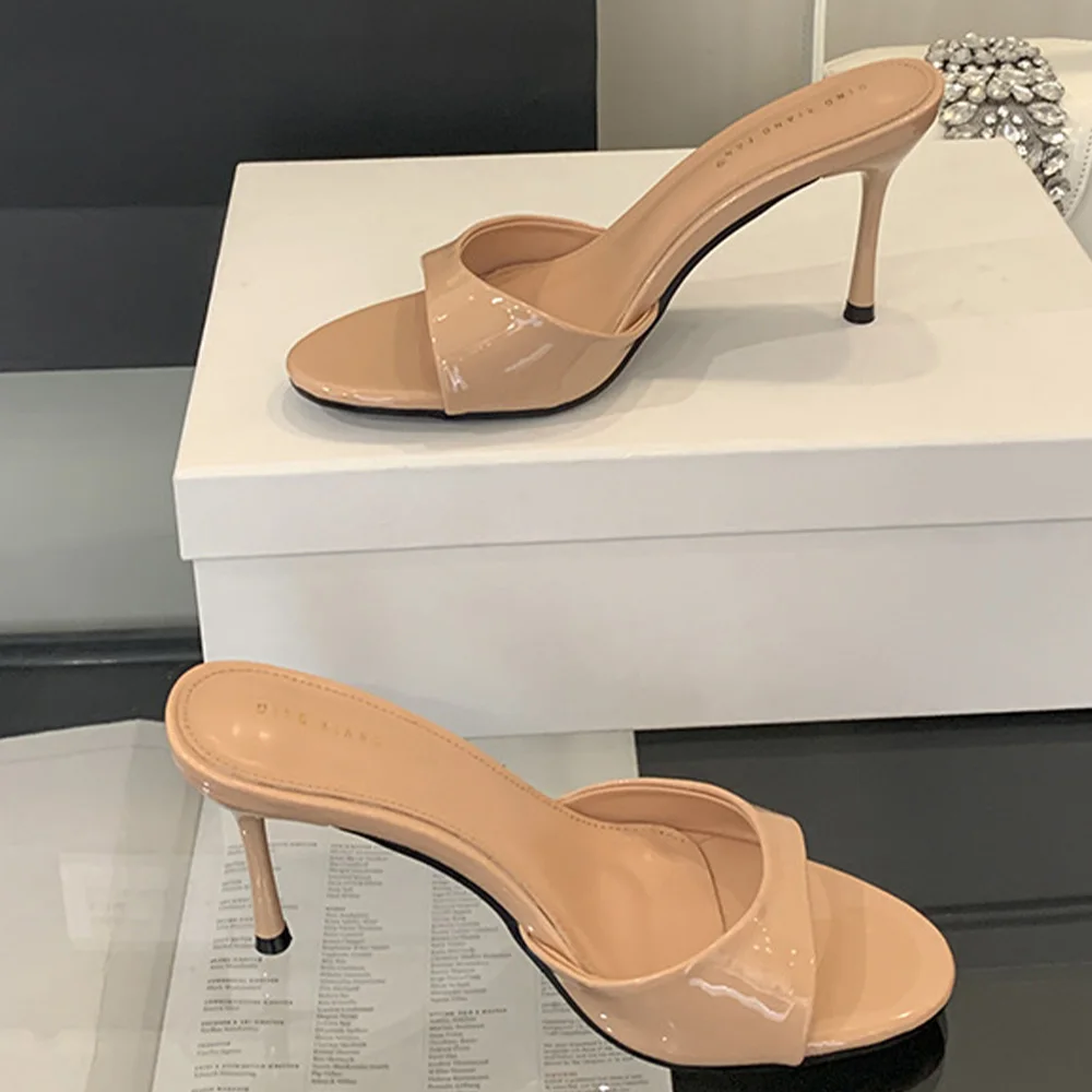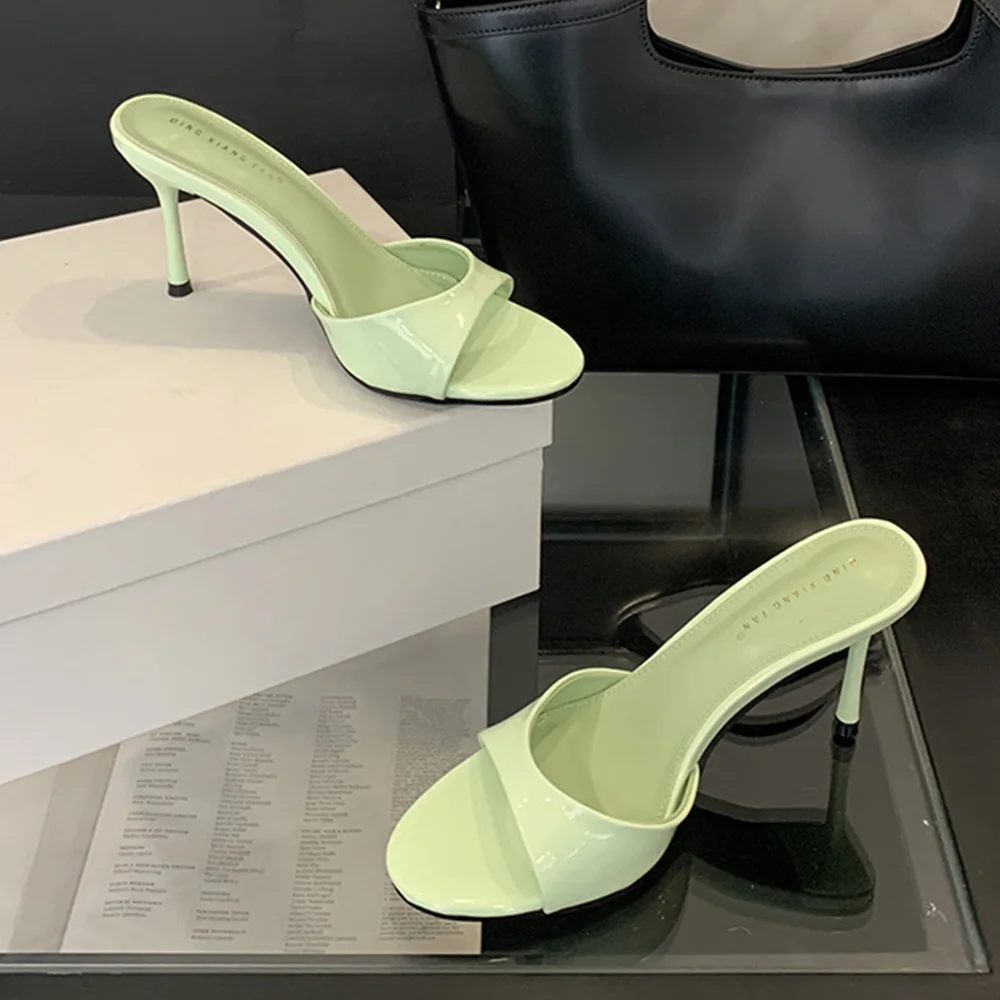 2025 Summer New Fashionable European American Thin High Heeled Sandals Slippers Green Red for Women