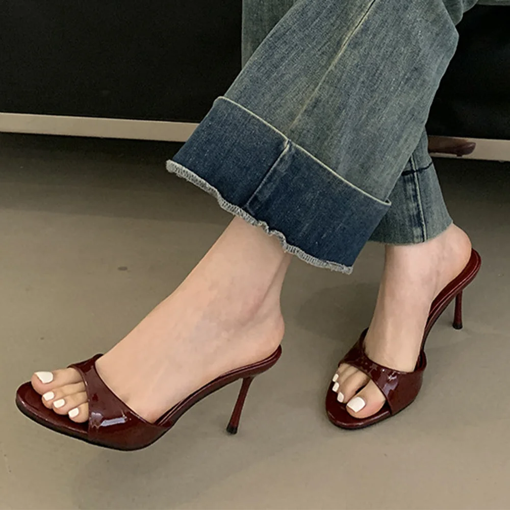 2025 Summer New Fashionable European American Thin High Heeled Sandals Slippers Green Red for Women-8