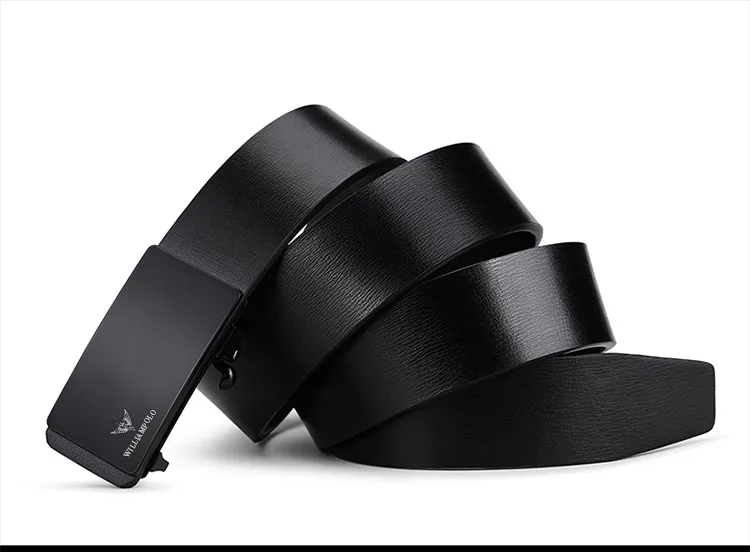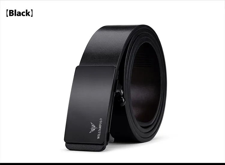 WILLIAMPOLO Brand Mens Leather Genuine Belt Black Fashion Alloy Luxury Automatic Buckle Youth Leather Simple Business Men's Belt-8