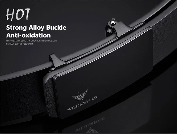 WILLIAMPOLO Brand Mens Leather Genuine Belt Black Fashion Alloy Luxury Automatic Buckle Youth Leather Simple Business Men's Belt-6