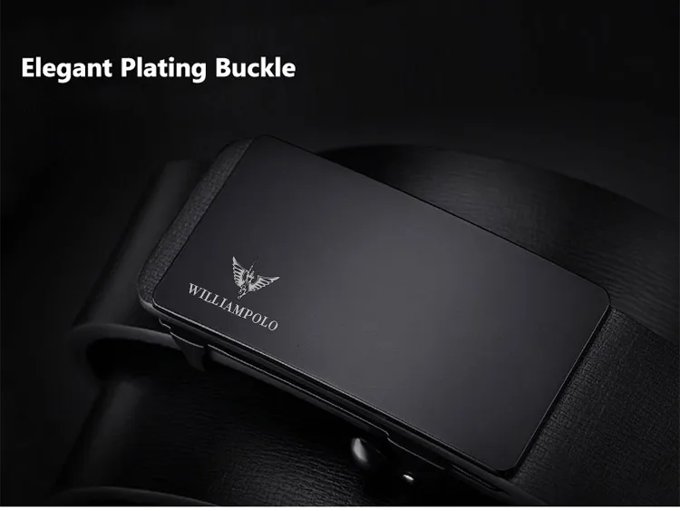 WILLIAMPOLO Brand Mens Leather Genuine Belt Black Fashion Alloy Luxury Automatic Buckle Youth Leather Simple Business Men's Belt-7