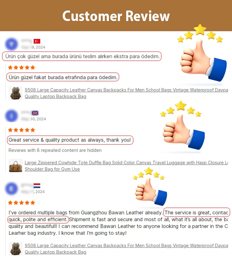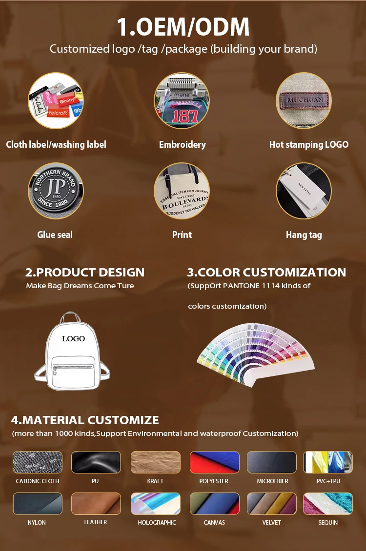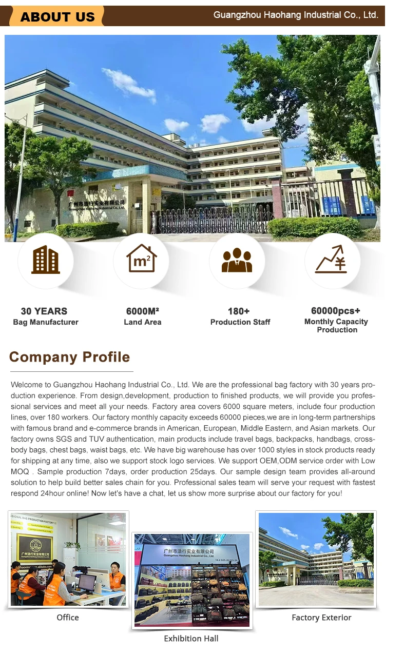 1. Could I have prices of your products? Welcome! Please feel free to send us an email here. You will get our reply in 24 hour. 2.How many days for the sample be finished? How about the mass production time? Normally it takes around 5-7 days for sample production.The mass production time depends on the QTY,usually within 15-30 days. 3. Are you a factory or trading company? Yes! We are true factory and have been producing bags for more than 30 years. 4. Can we use our own logo on your bag? Yes! We have many kinds of method to add your logo. 5. Can you do our own design? Yes! Please provide your details information or sample to us. Our design team can also give you further idea.We are glad to quote you the price. 6.What kind of artwork format you need us to provide? The best format are AI, CDR, PSD, PDF. 7. How do you ship the products? By sea, air and courier like DHL, Fedex, UPS,TNT,etc.