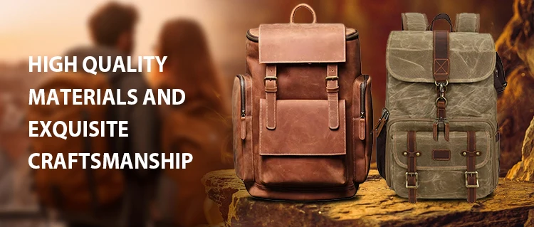 Large Capacity Retro Wax Dyed Canvas Backpack for Men Portable Multifunctional Outdoor Travel Bag with Zipper for Computer-5