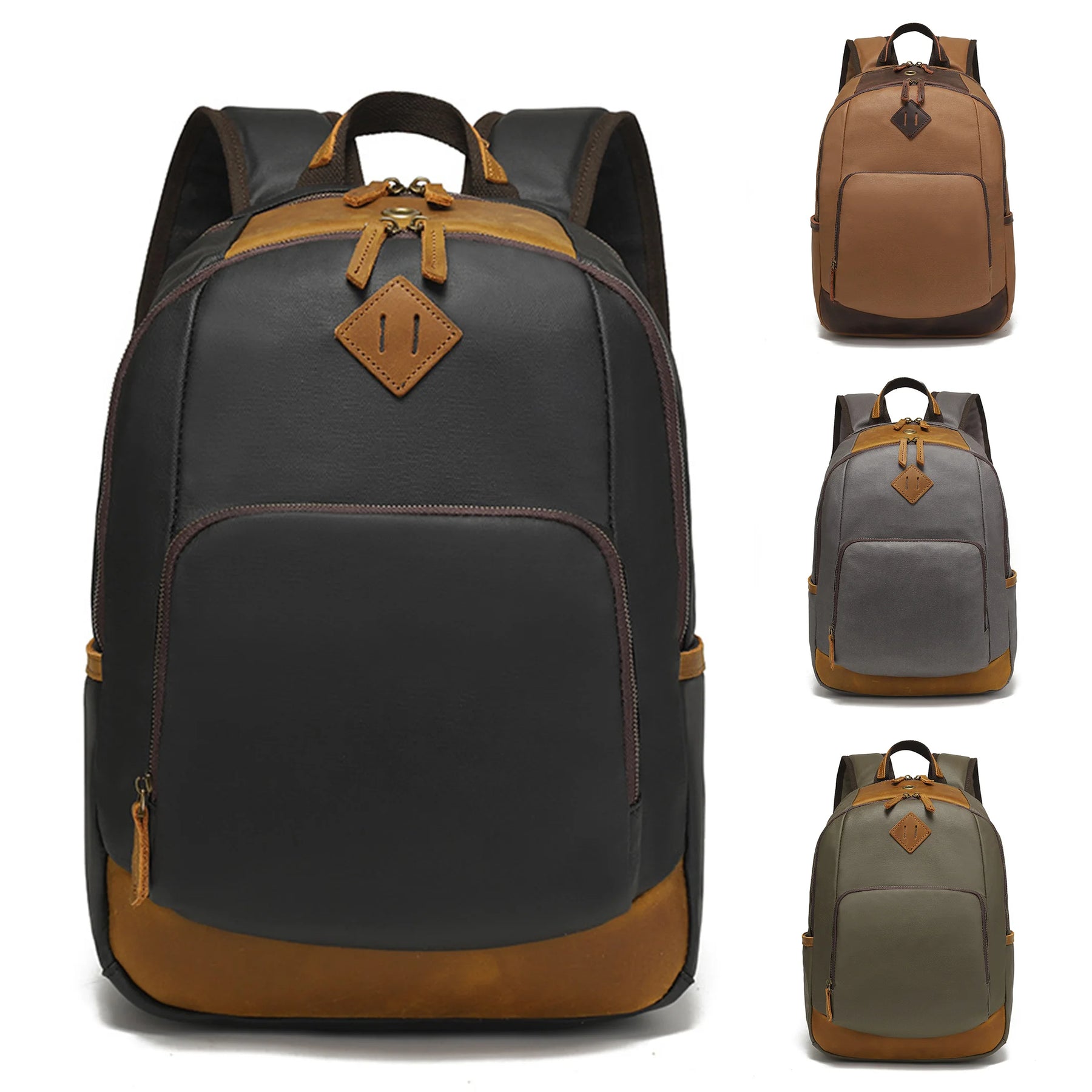 Large Capacity Retro Wax Dyed Canvas Backpack for Men Portable Multifunctional Outdoor Travel Bag with Zipper for Computer