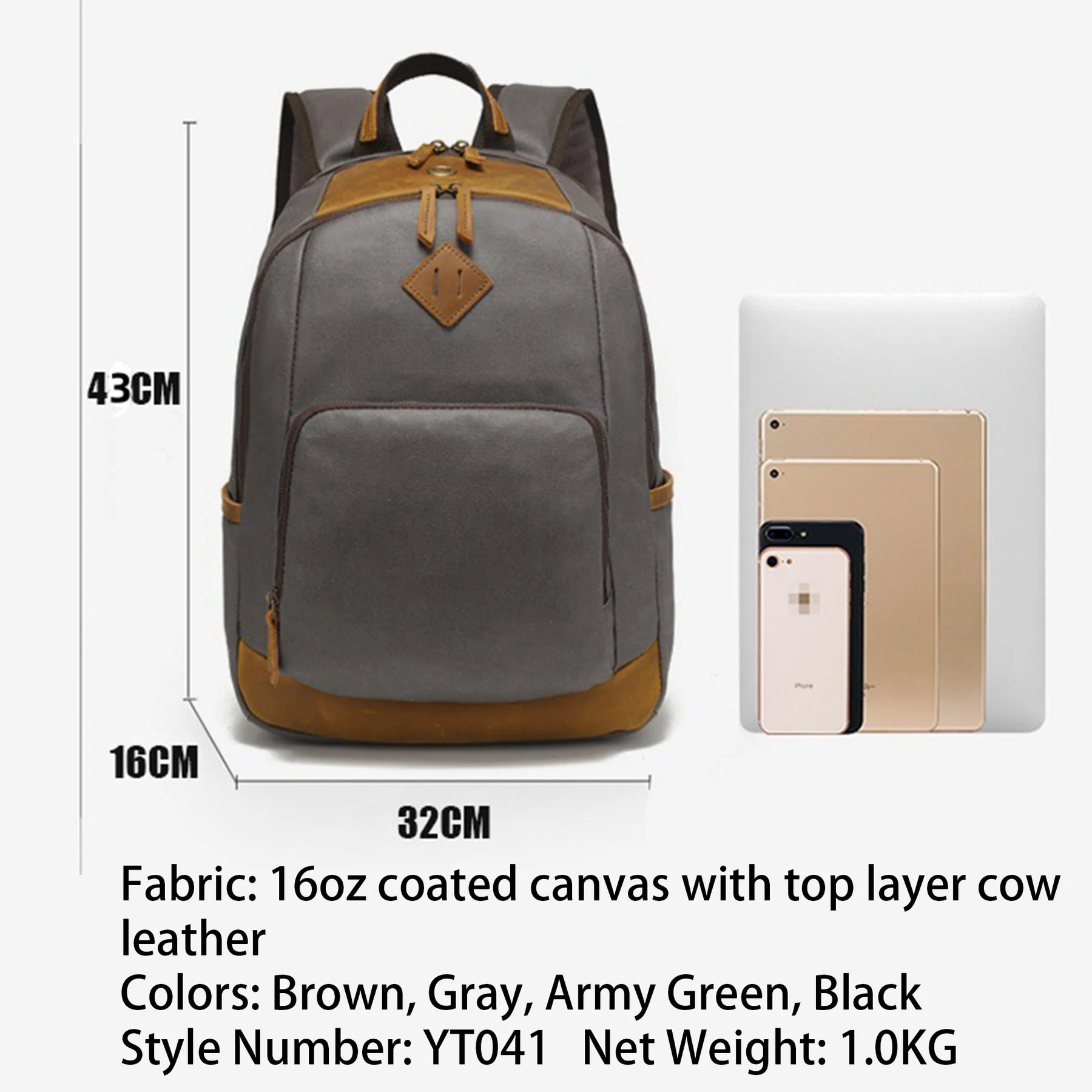 Large Capacity Retro Wax Dyed Canvas Backpack for Men Portable Multifunctional Outdoor Travel Bag with Zipper for Computer-7