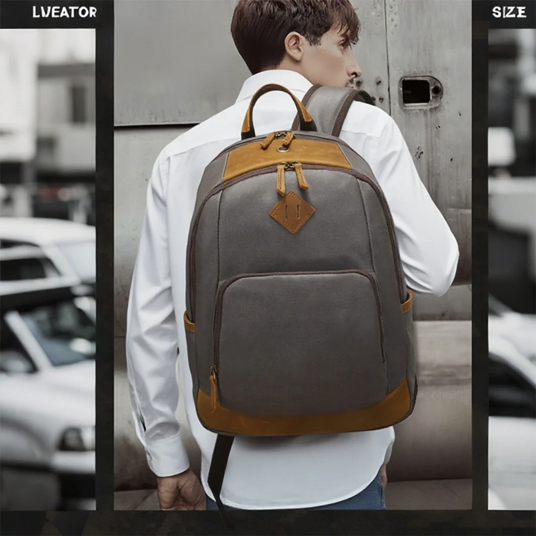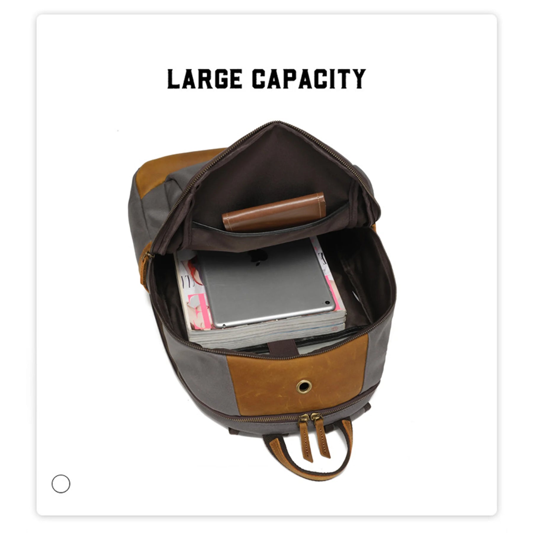 Large Capacity Retro Wax Dyed Canvas Backpack for Men Portable Multifunctional Outdoor Travel Bag with Zipper for Computer-6
