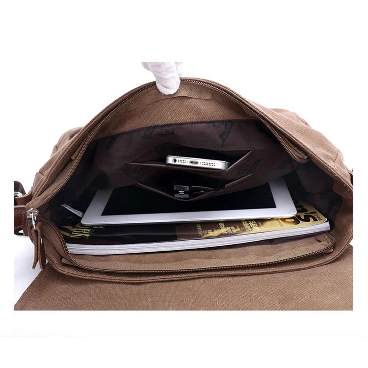 Wholesale Custom Trendy Business Casual Men Sling Bags Canvas Shoulder Crossbody Messenger Bag-7