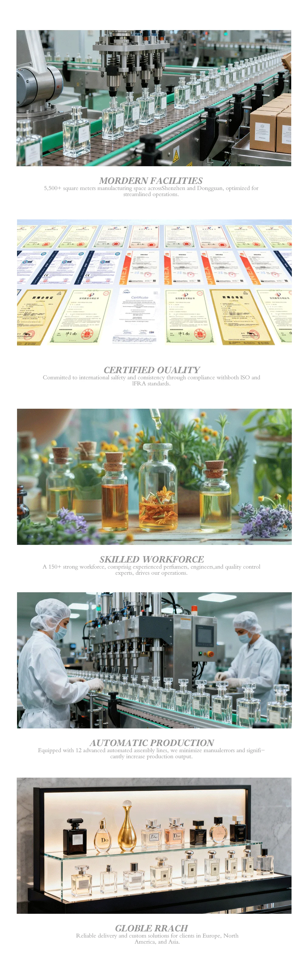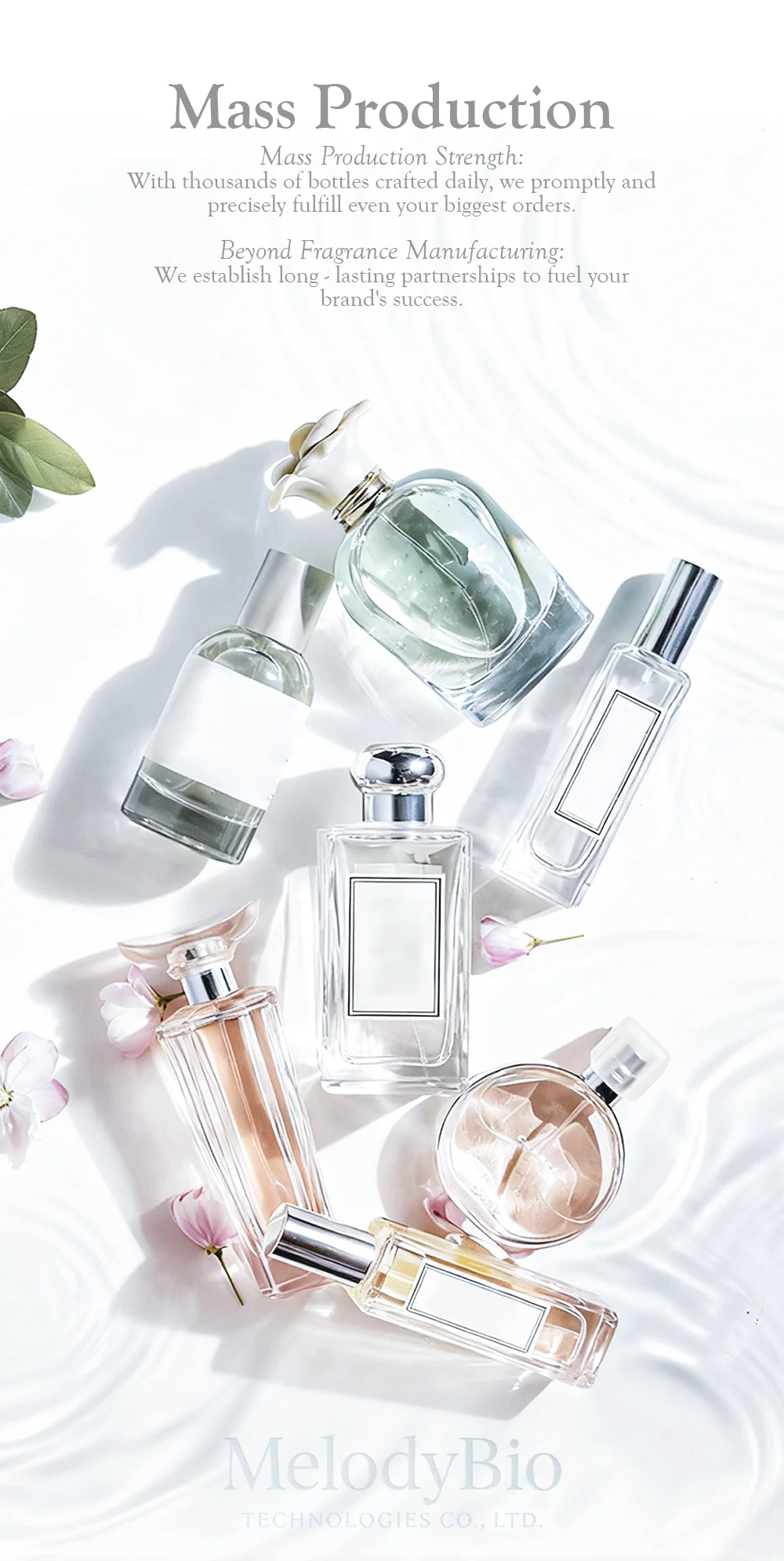 MelodyBio Perfume Factory has more than 20 years of expertise in the fragrance industry and has become a trusted partner for global brands seeking ODM (Original Design Manufacturing) and OEM (Original Equipment Manufacturing) solutions. What started as a small workshop in Chaoshan has expanded into a modern, large-scale enterprise headquartered in Chaoshan and Guangzhou, with a combined facility area of 6,000 square meters. These advanced manufacturing spaces are designed for efficiency, safety, and precision, ensuring that every stage of production meets international standards and customer expectations. Our facilities are equipped with state-of-the-art technology, fully automated production lines, and high-precision equipment to guarantee consistency, scalability, and fast turnaround times. With this robust infrastructure, MelodyBio can handle projects of any size, from boutique fragrance batches to high-volume retail orders, without compromising quality or speed. We understand that the fragrance market is competitive and diverse, and our mission is to bridge artistry and technology to create products that stand out. Our team of more than 150 skilled professionals includes experienced perfumers, mechanical engineers, industrial designers, packaging specialists, and quality control experts. These professionals work collaboratively to ensure that every fragrance we produce embodies both technical excellence and creative vision. Our perfumers are experts in combining premium raw materials to create scents that align with emerging trends and customer preferences. Engineers and designers translate these concepts into functional and beautiful packaging, while our quality specialists monitor every stage of production to ensure compliance with ISO and IFRA standards for safety and consistency.