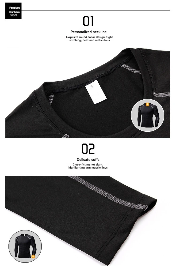 Men's PRO Tight Fitting Fitness Top Running Training T-shirt Elastic Quick Drying Long Sleeved Shirt Sports Clothes-10