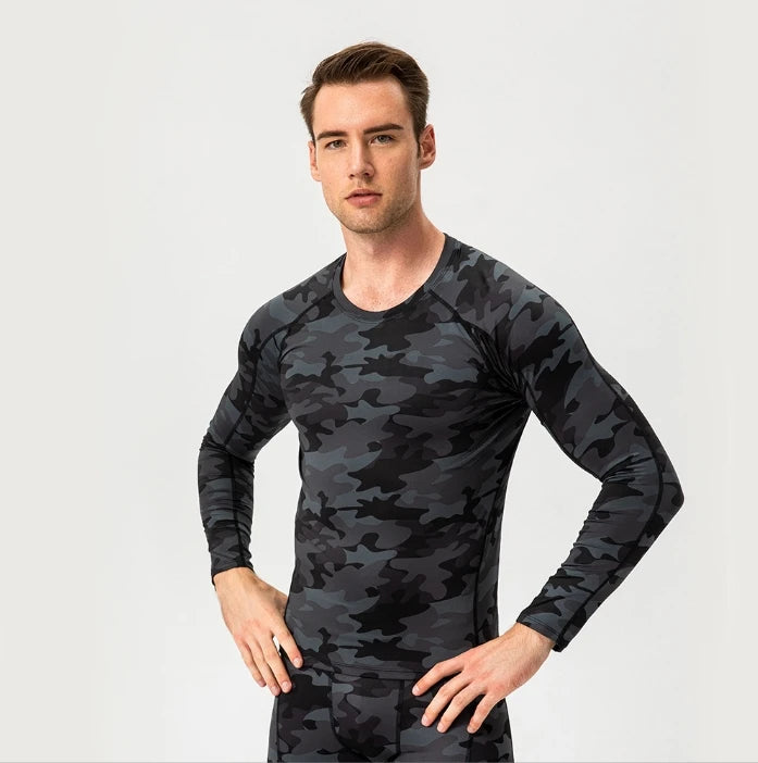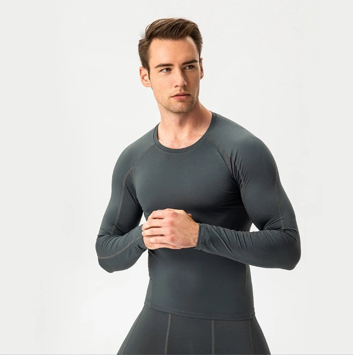 Men's PRO Tight Fitting Fitness Top Running Training T-shirt Elastic Quick Drying Long Sleeved Shirt Sports Clothes