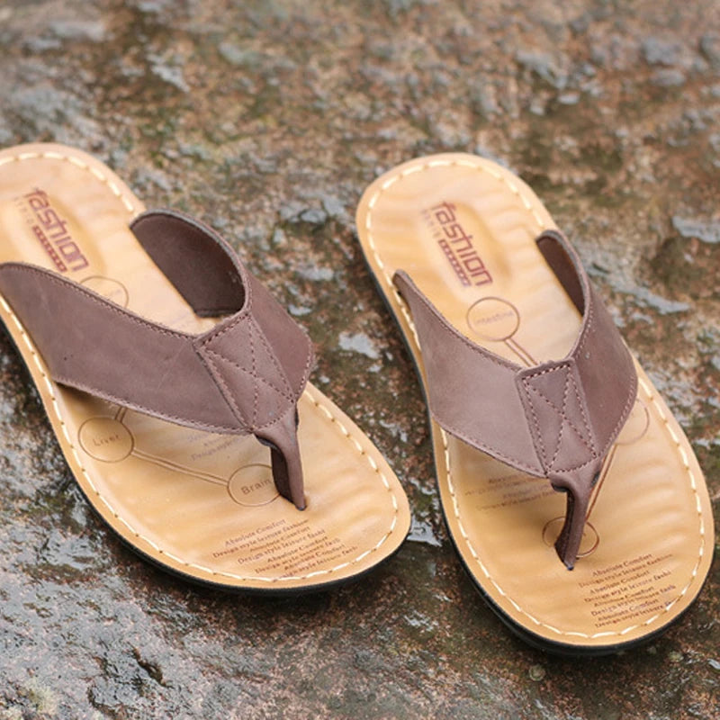 New products men leather slippers casual easy wear sleeper chappal Low Price