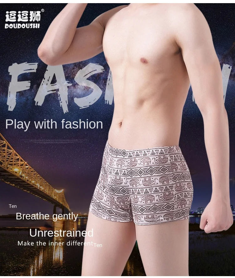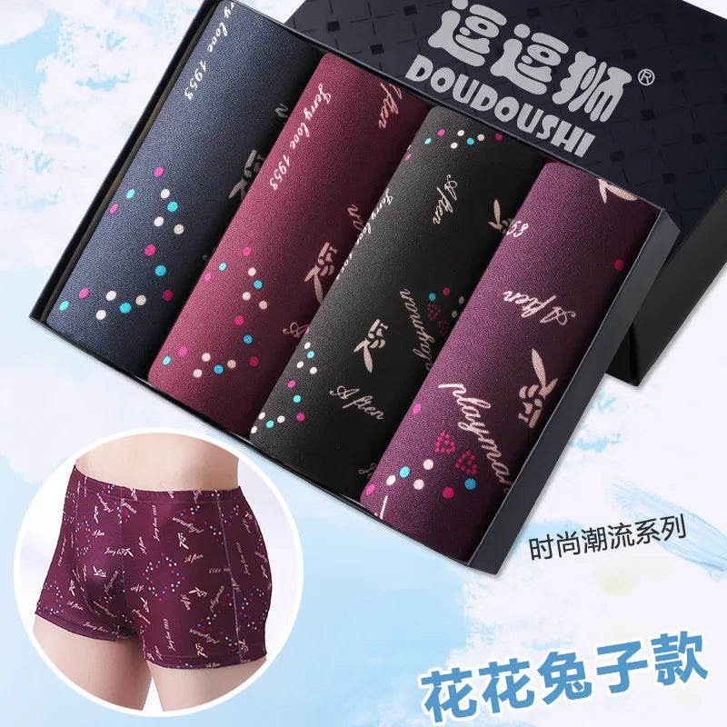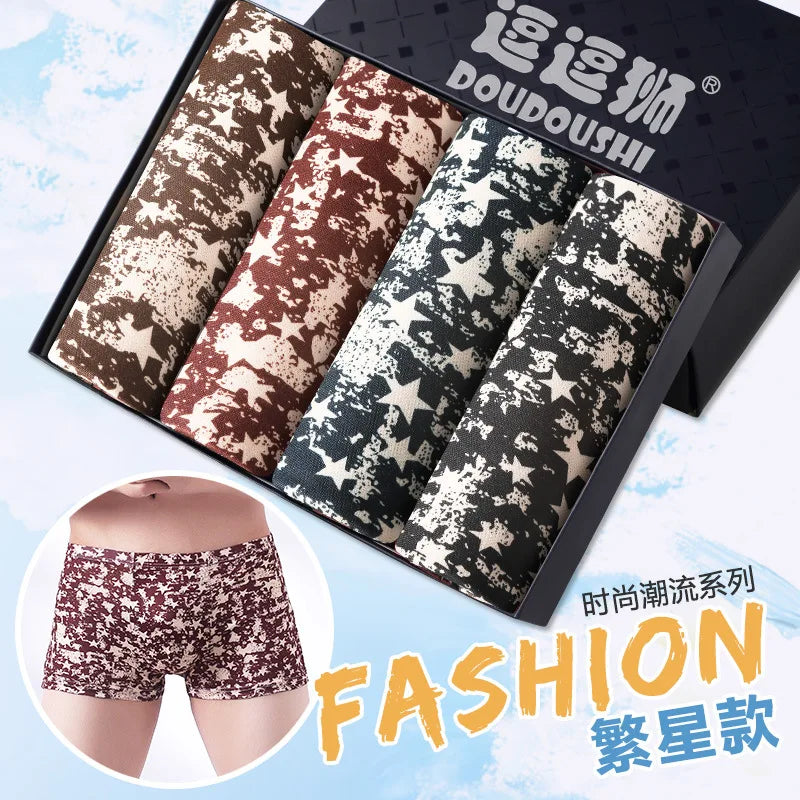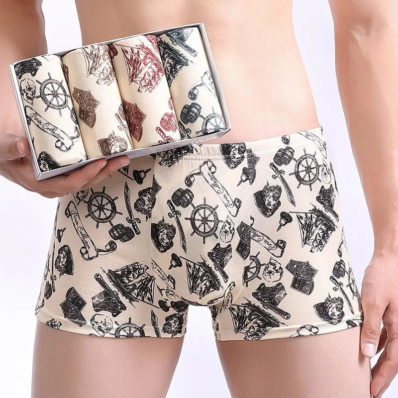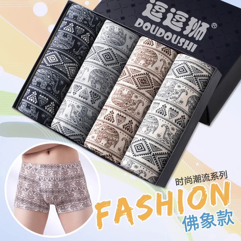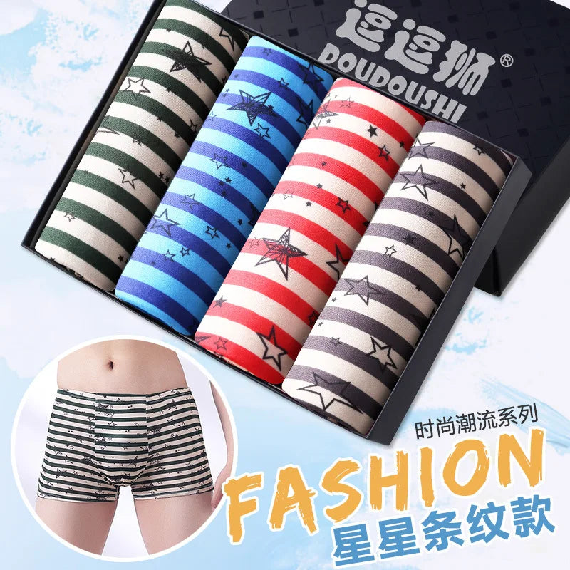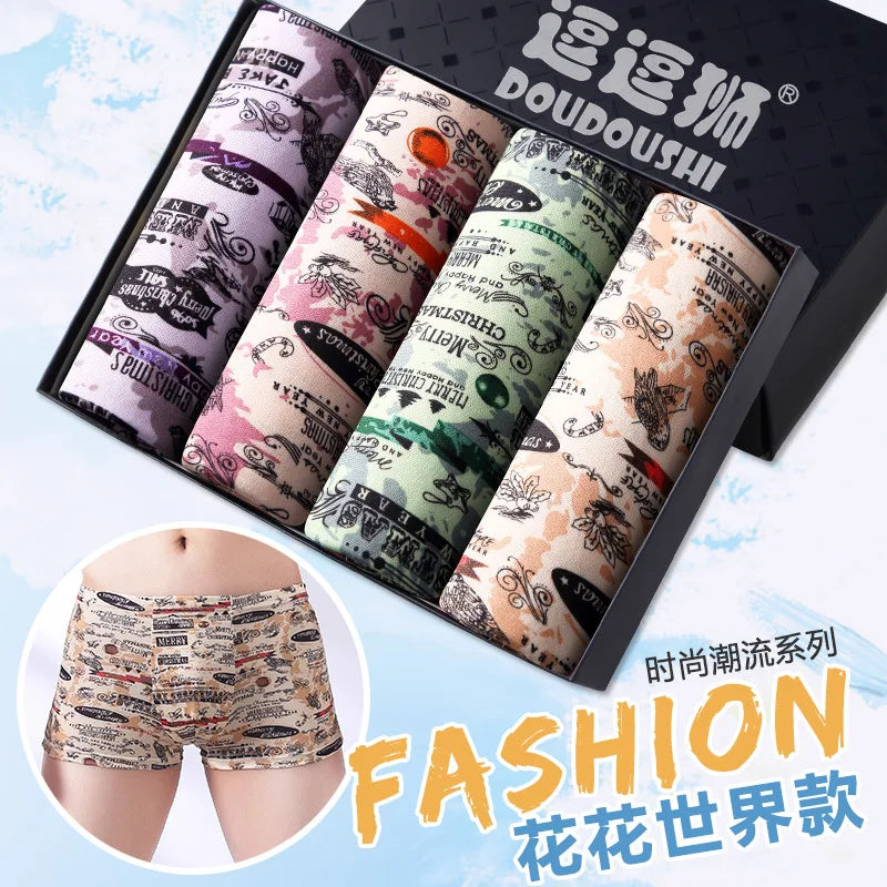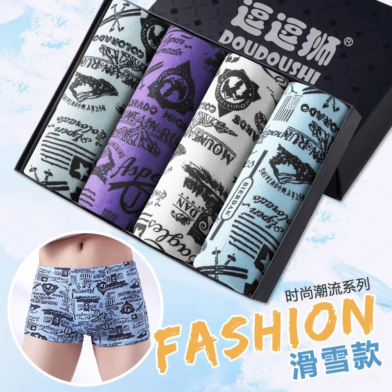 Men's Four-Boxer Printed Breathable Mid-Rise Underwear Fashion Trend Plus Hypertrophy Students Knitted Eco-Friendly Quick Dry