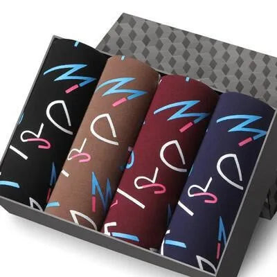 Men's Four-Boxer Printed Breathable Mid-Rise Underwear Fashion Trend Plus Hypertrophy Students Knitted Eco-Friendly Quick Dry-4