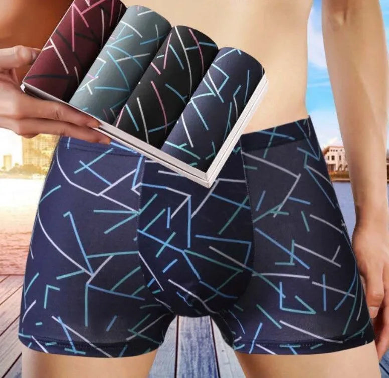Men's Four-Boxer Printed Breathable Mid-Rise Underwear Fashion Trend Plus Hypertrophy Students Knitted Eco-Friendly Quick Dry-1