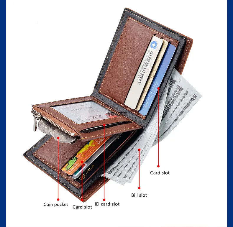 New Fashion Men's Wallet Tri-fold Splicing Design Business Coin Purse Multi-card Pu Leather Wallet-7