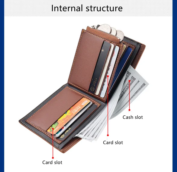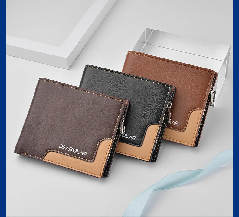 New Fashion Men's Wallet Tri-fold Splicing Design Business Coin Purse Multi-card Pu Leather Wallet-3