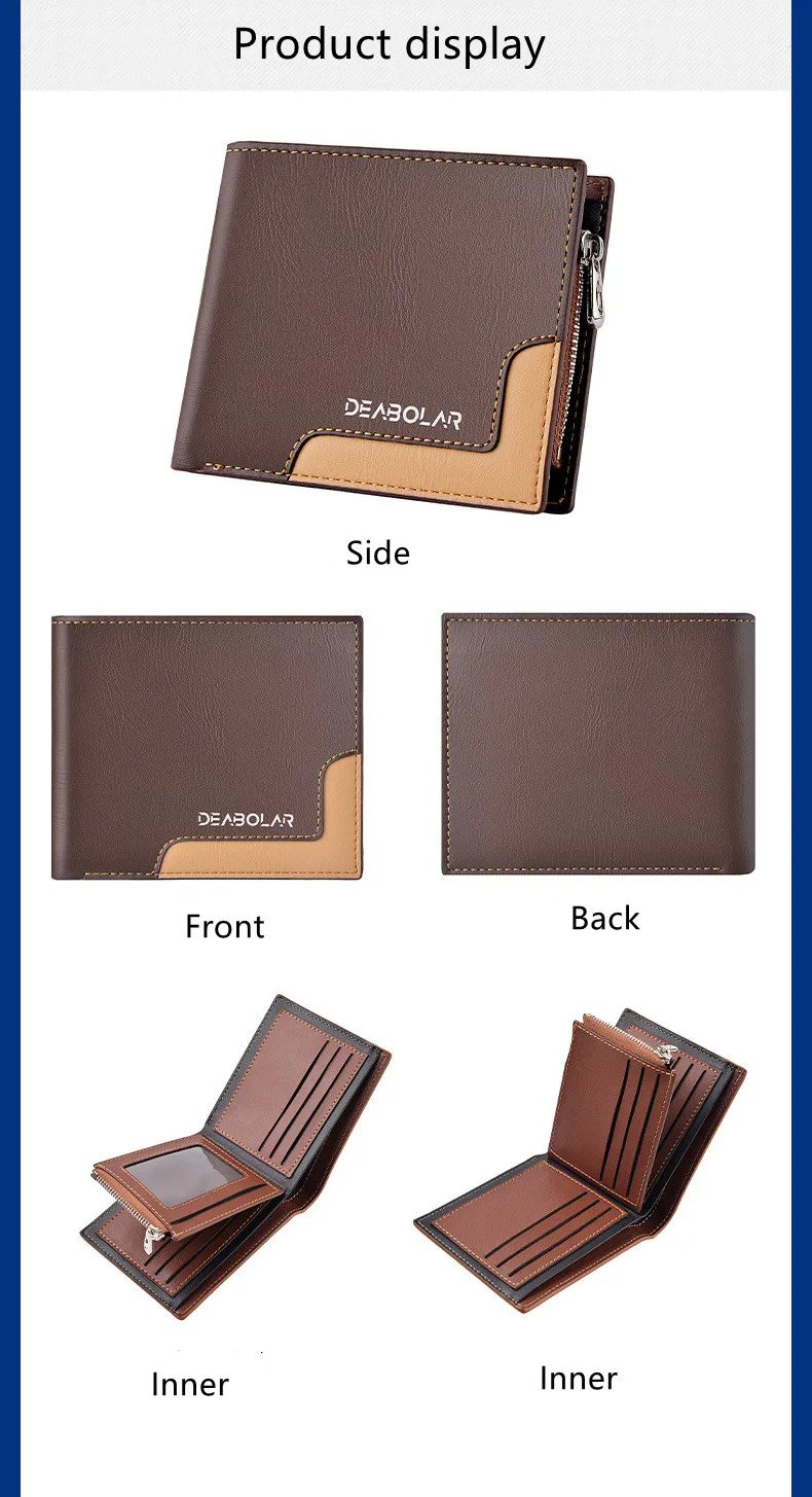 New Fashion Men's Wallet Tri-fold Splicing Design Business Coin Purse Multi-card Pu Leather Wallet-6