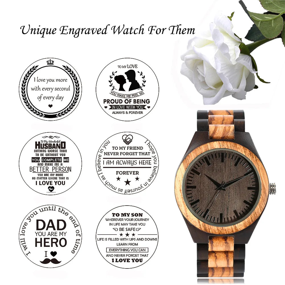 Dropshipping Personalized Couple Watch Mens Women Wristwatch Family Birthday Gift for SON DAD Engraving Logo Wood Quartz Watches |