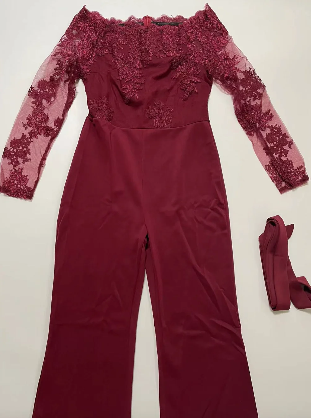 OEM ODM Women Clothing Elegant Overalls Off Shoulder Slash Neck Embroidery Lace Office Casual Jumpsuit-10