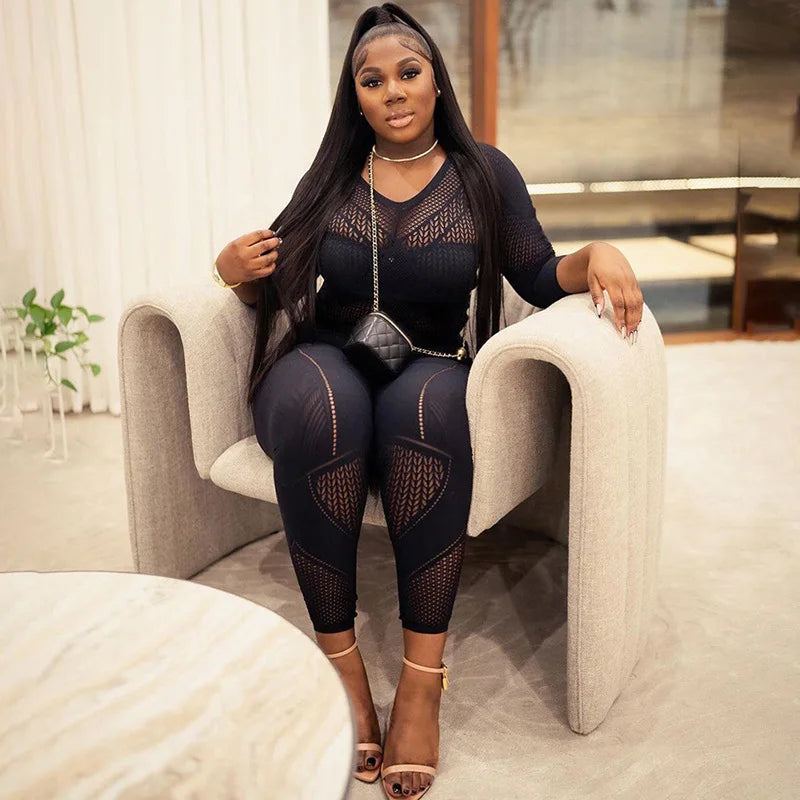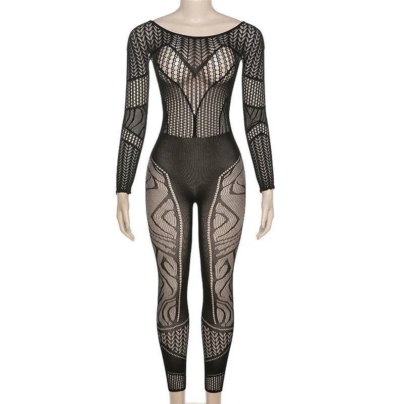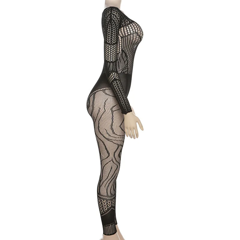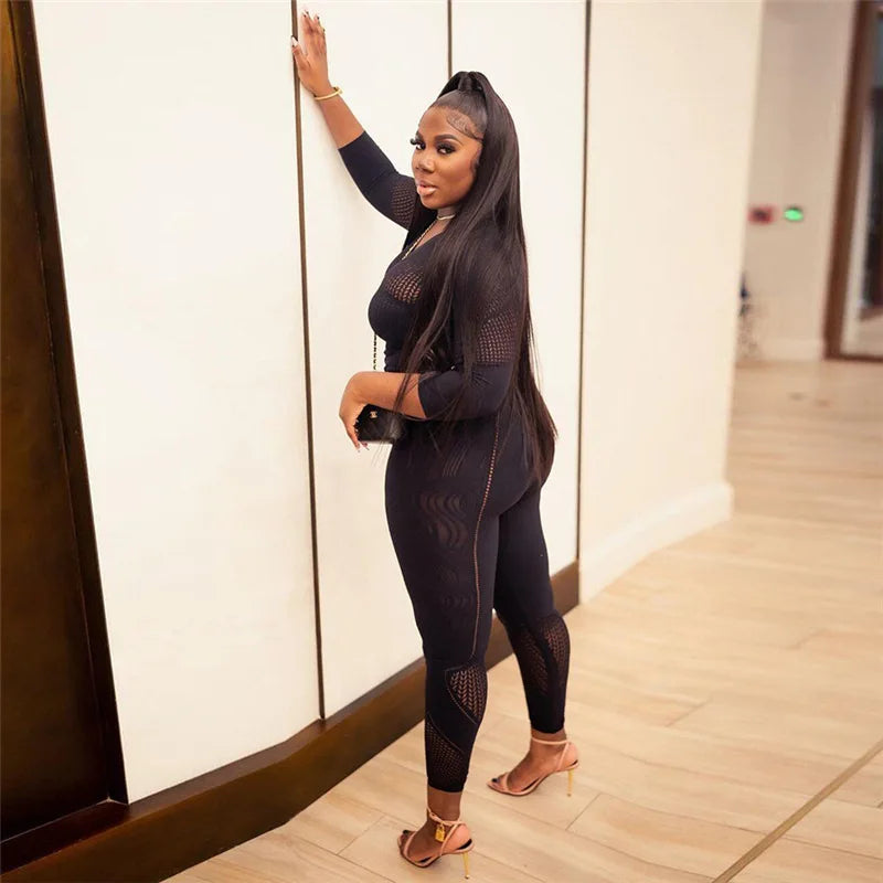 OUDINA Hotselling Sexy Tight-fitting Hollow Tight One Piece Casual Jumpsuit Rompers Women's Jumpsuits