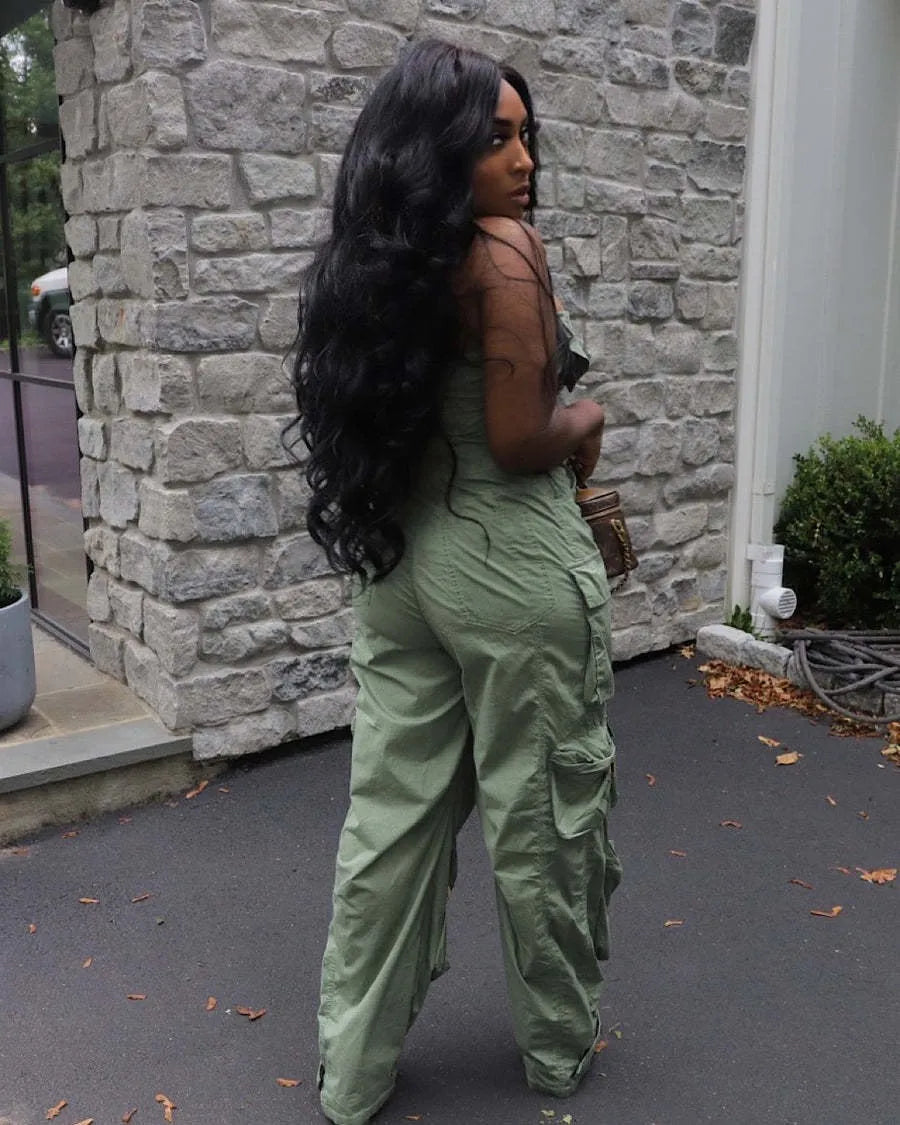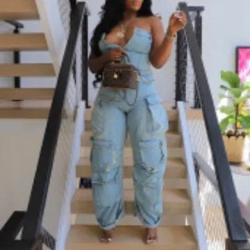 Peeqi Fashion Streetwear Strapless Sleeveless Pocket Cargo Jumpsuits One Piece Romper Denim Jeans Sexy Plus Size Jumpsuit Women-6