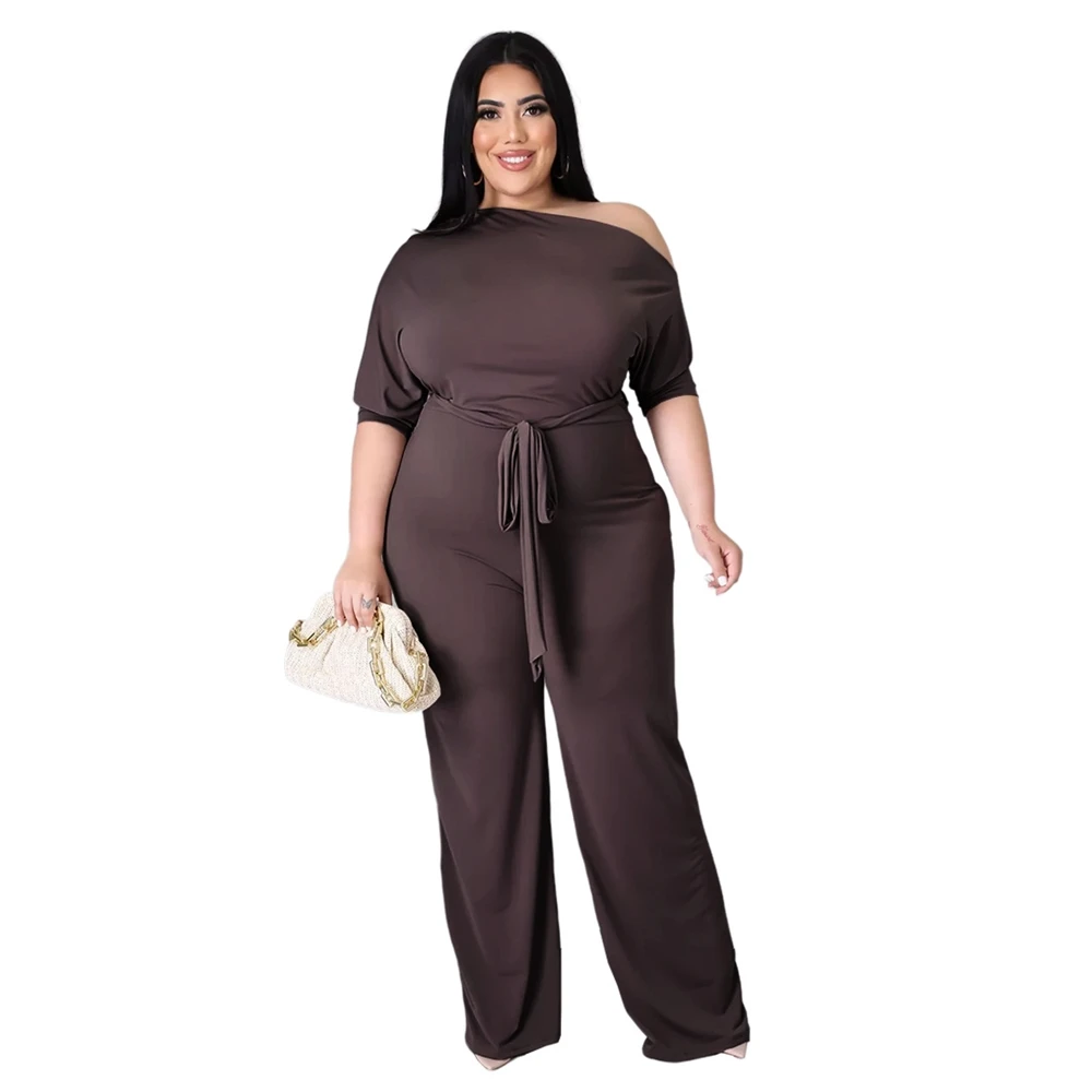 Plus Size Jumpsuit XL-4XL Bandage Rompers Women Clothing Autumn Solid Oblique Shoulder Plus Size Women's One Piece Jumpsuit-11