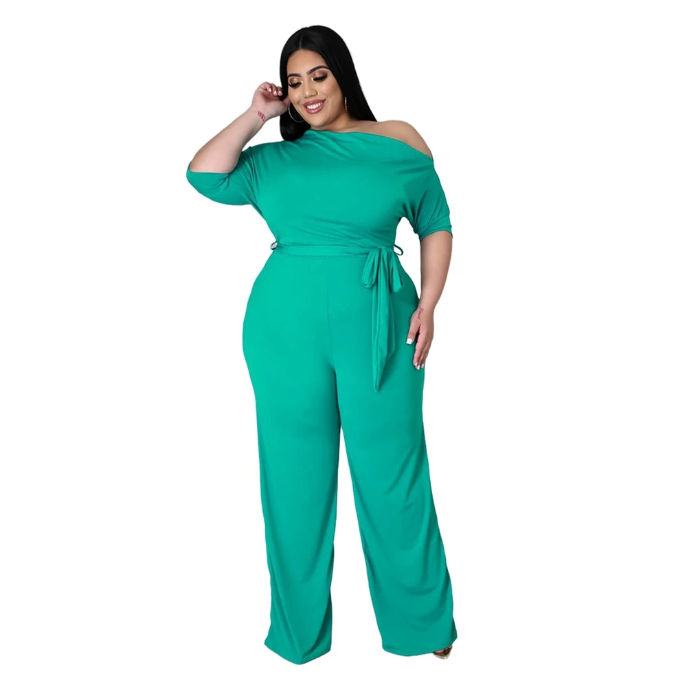 Plus Size Jumpsuit XL-4XL Bandage Rompers Women Clothing Autumn Solid Oblique Shoulder Plus Size Women's One Piece Jumpsuit-2