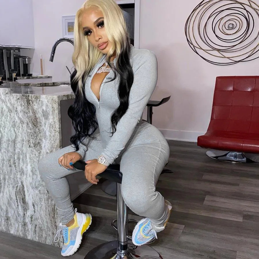 Wholesale white gym fitness bodycon jumpsuits long sleeve lucky label one piece jumpsuit women 2023
