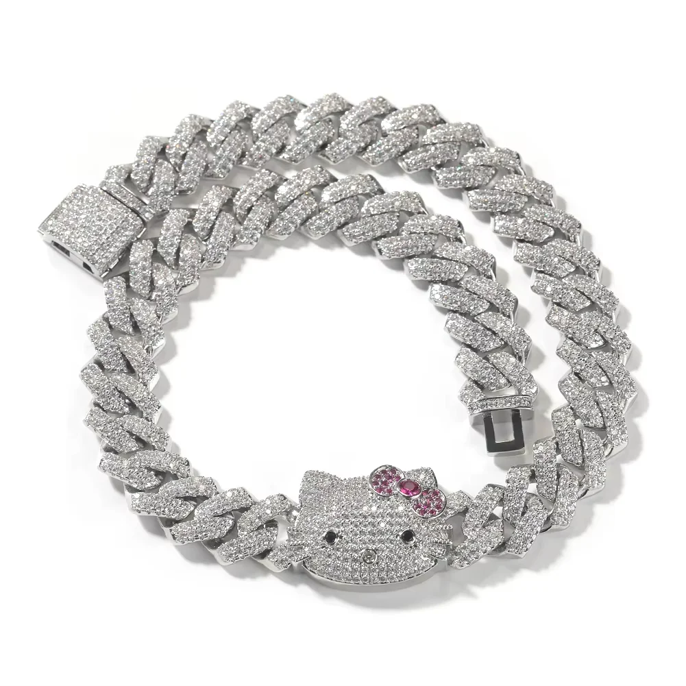 High Quality Iced-Out Moissanite Cuban Link Bracelet Cute Hello Kitty Brass Hip Hop Cuban Bracelet for Men Women-7