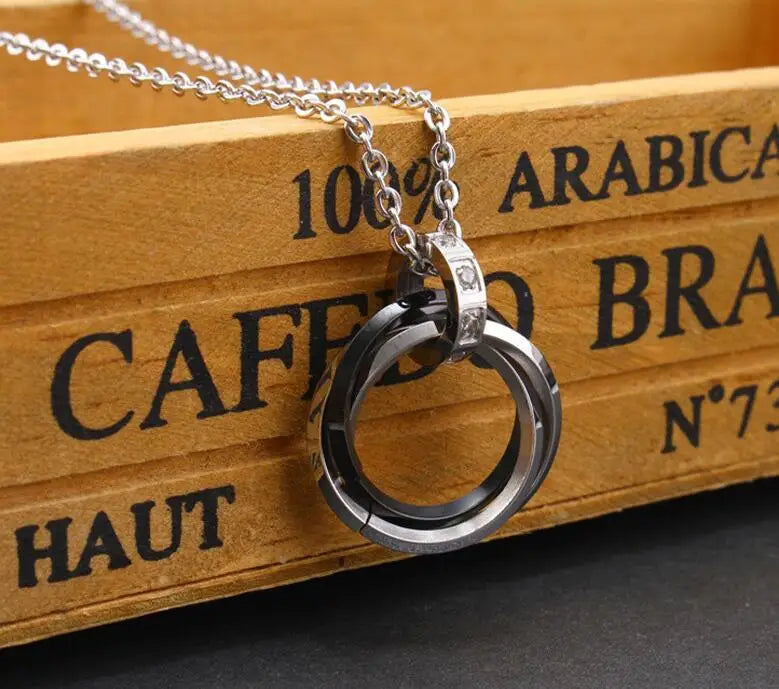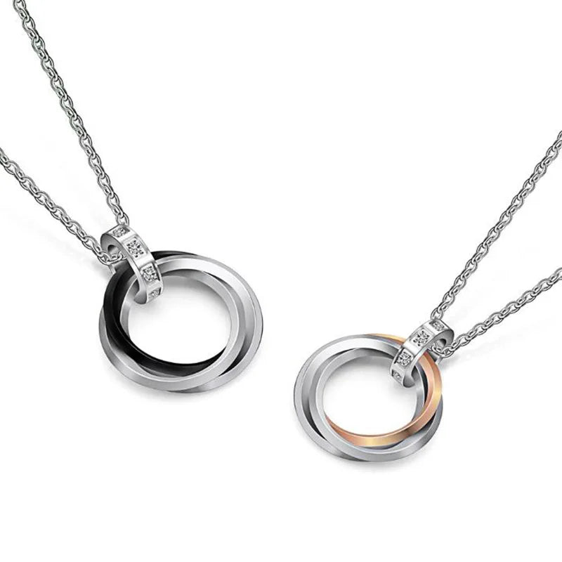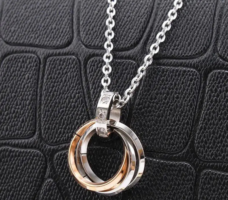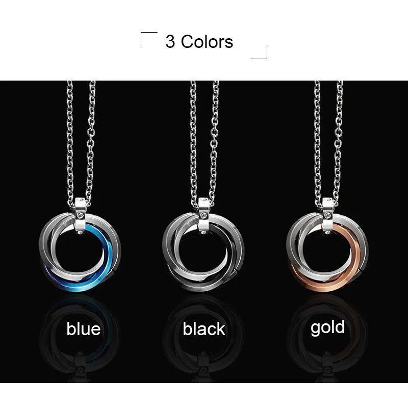 Product Stainless Steel Rhinestones Men Women Unisex Trendy Jewelry Gift interlocking 3 Circles Pendant Necklace for Men Women