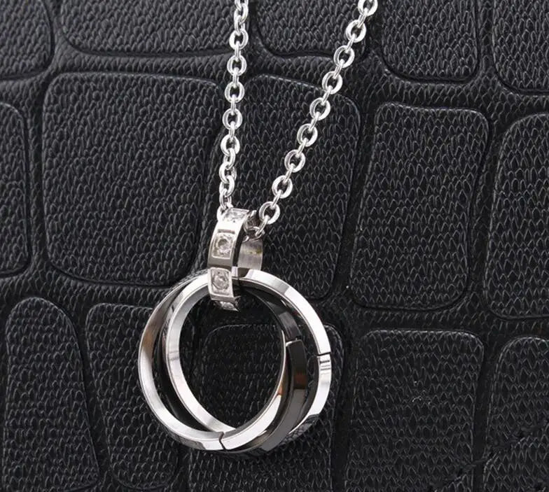 Stainless Steel 50cm Long Rhinestones Men Women Unisex Trendy Jewelry Gift Interlocking 3 Circles Pendant Necklace for Men Women-1
