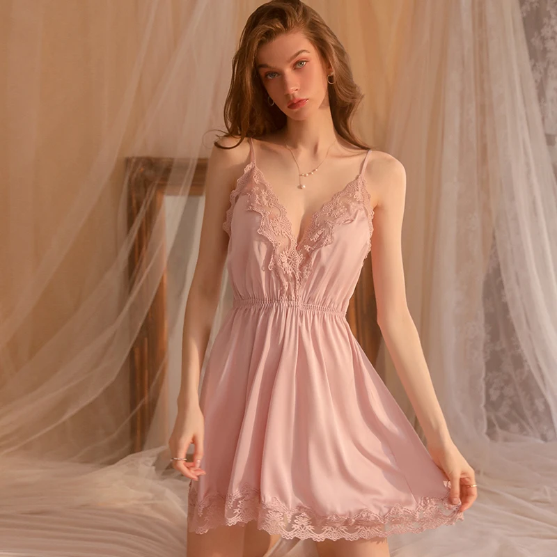 Women's Luxury Sleepwear Kimono Bride Wedding Lace Nightdress Sexy Nightwear Silk Satin Nightgown and Robe Pajama Sets-24
