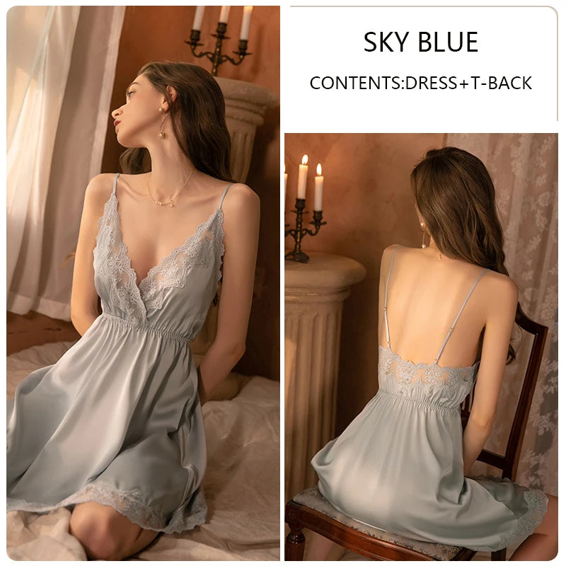 Women's Luxury Sleepwear Kimono Bride Wedding Lace Nightdress Sexy Nightwear Silk Satin Nightgown and Robe Pajama Sets-20