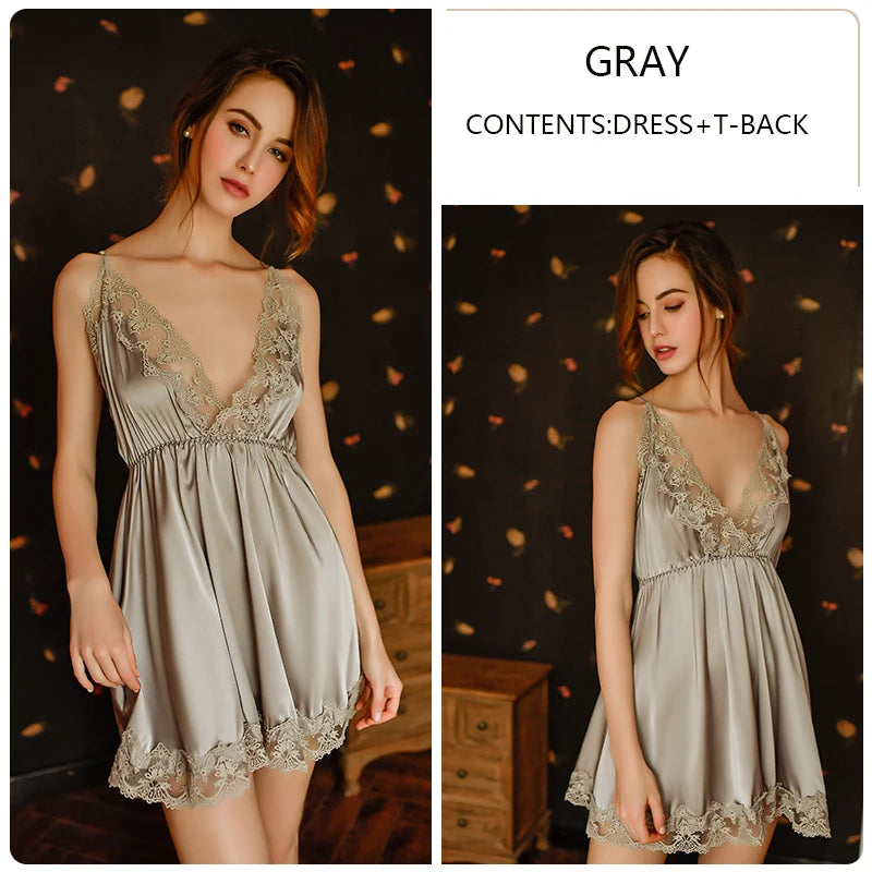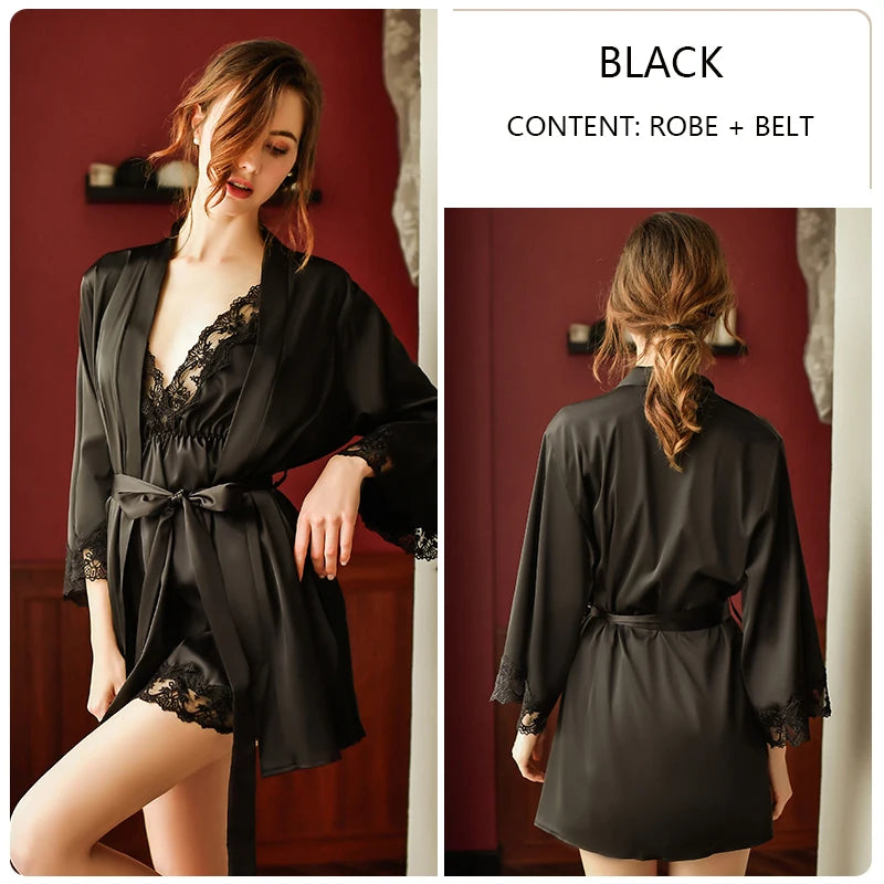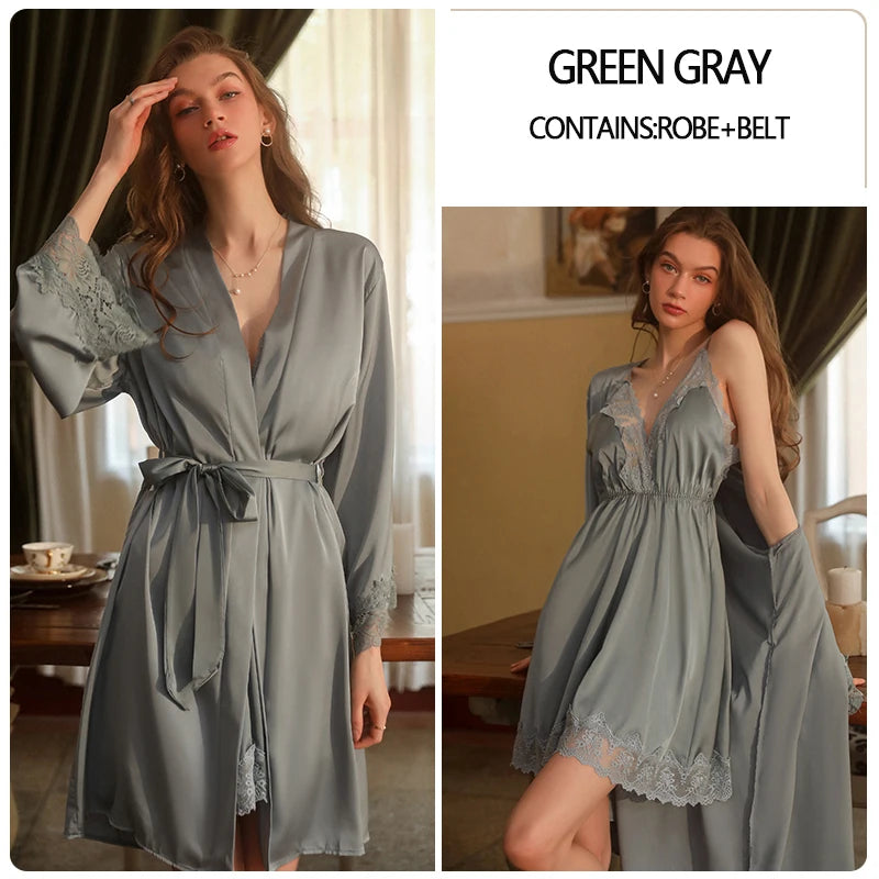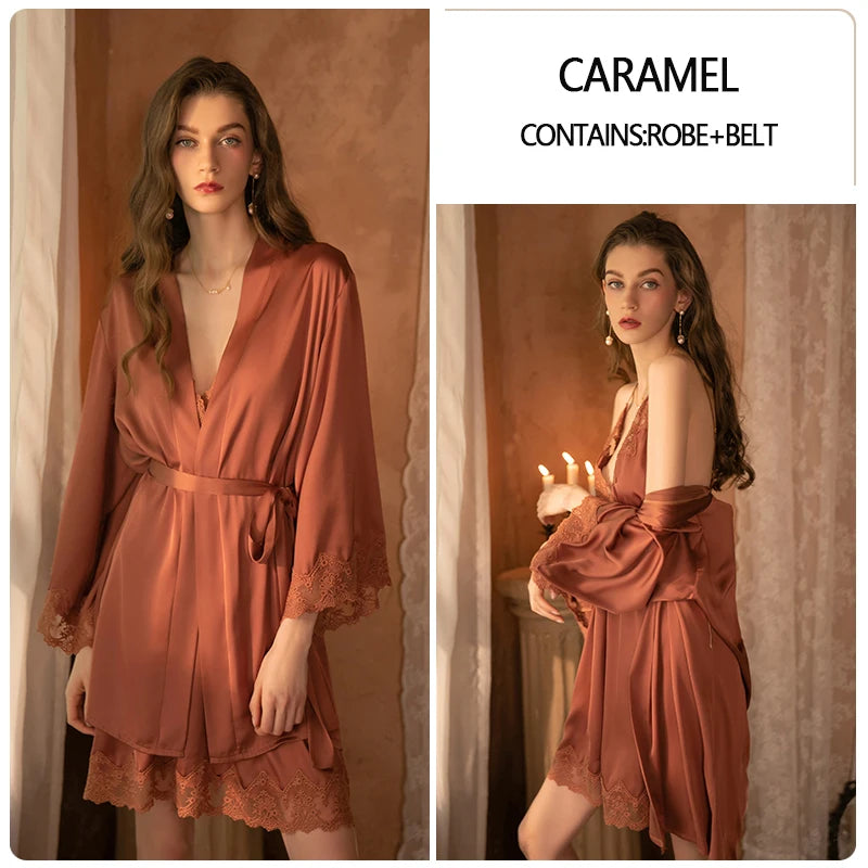 Women's Luxury Sleepwear Kimono Bride Wedding Lace Nightdress Sexy Nightwear Silk Satin Nightgown and Robe Pajama Sets-1