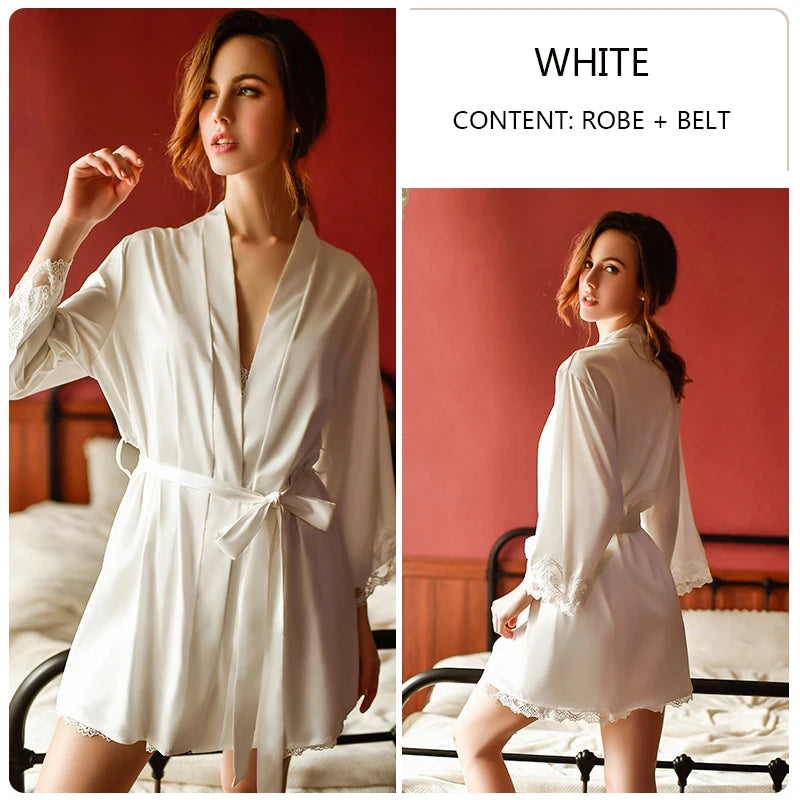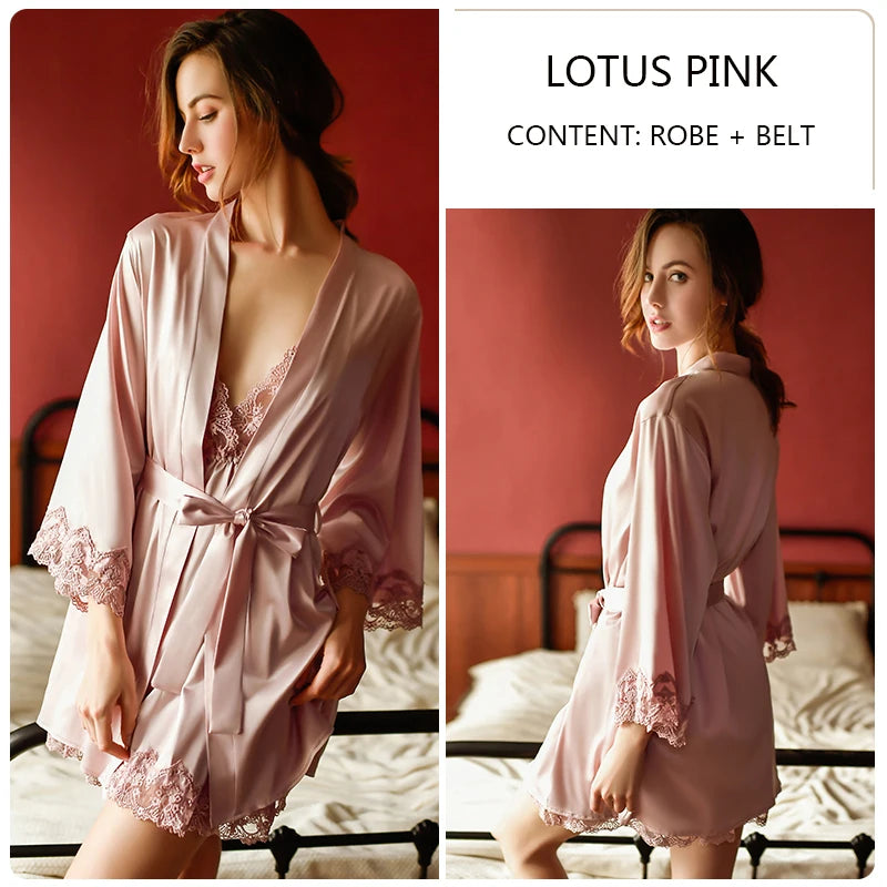 Women's Luxury Sleepwear Kimono Bride Wedding Lace Nightdress Sexy Nightwear Silk Satin Nightgown and Robe Pajama Sets-10