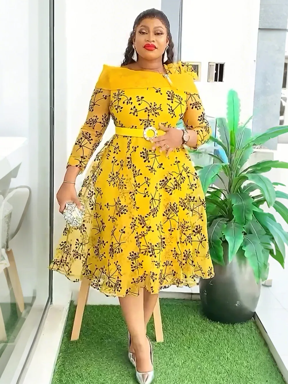African Dresses for Women Elegant Lady Dashiki Ankara Sexy V Neck Gowns Party Robe Outfits Africaine Femme 5XL-7