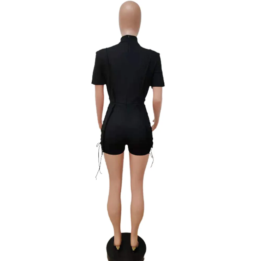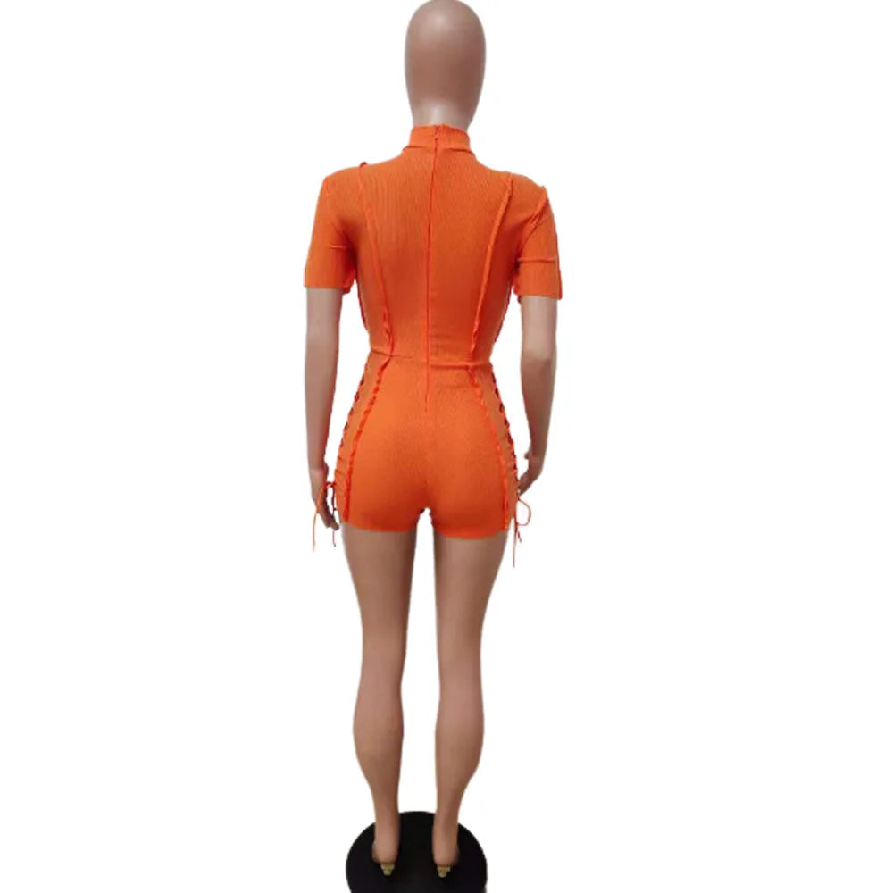 ANSKZTN Women Fashion Bodycon Solid O Neck Hollow Out Bandage Short Sleeve Rompers Jumpsuit-0