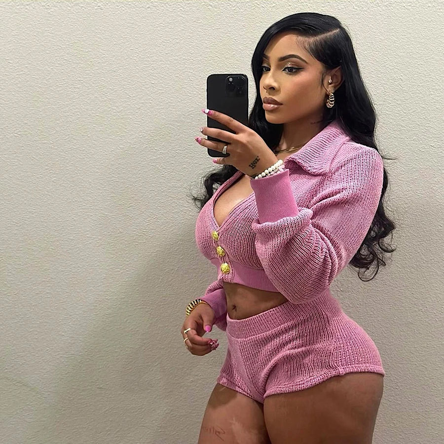 New Arrivals 2 Piece Set Women Knitted Outfits Long Sleeve Stretch Sweater Women's Sets Fall 2024 Women Clothes