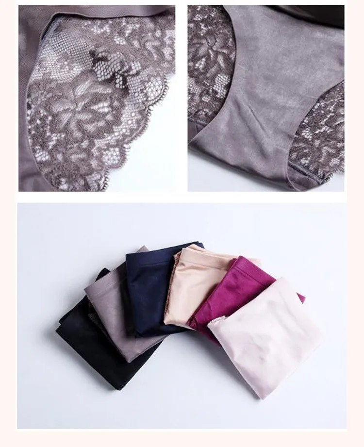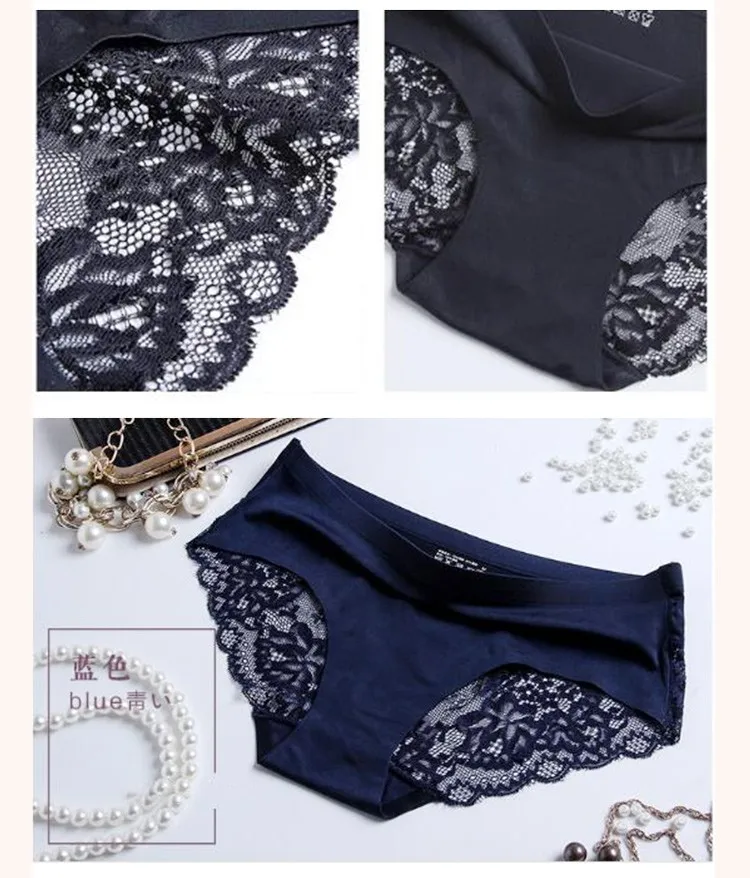 Ladies Sexy Satin Ice Silk Underwear Women Sexy Briefs Seamless Lace Panties Women's Panties Woman Underwear S086-4