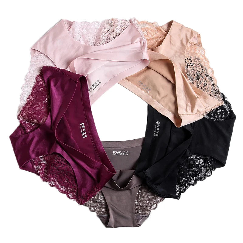 Ladies Sexy Satin Ice Silk Underwear Women Seamless Lace Panties
