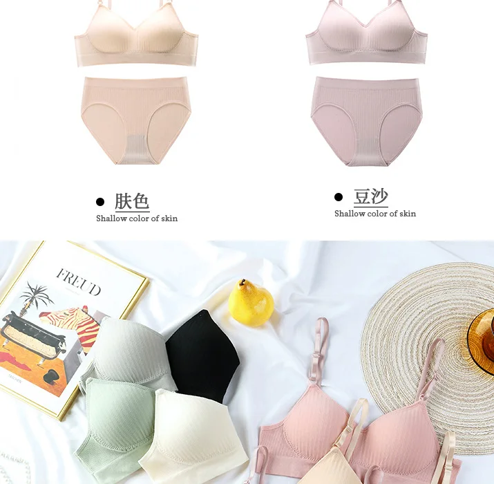 Ladies Underwear Sexy Bra and Panty New Design Deep V Gathered 3D Cup Women  Push up Solid Color-7