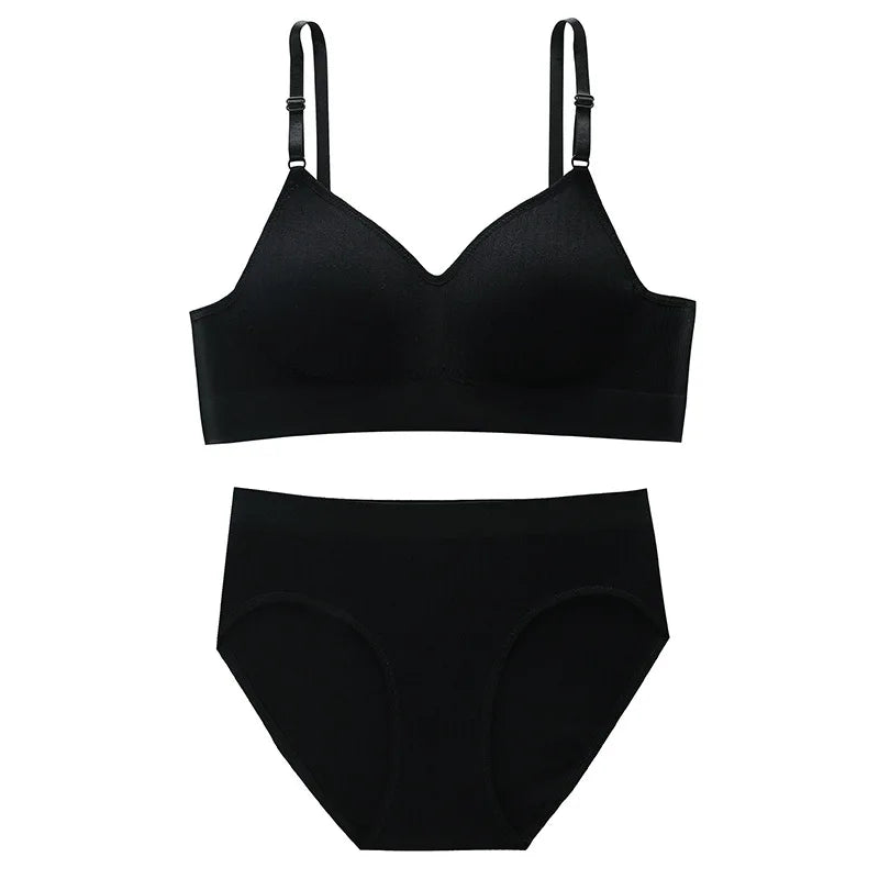 Ladies Underwear Sexy Bra and Panty New Design Deep V Gathered 3D Cup Women  Push up Solid Color-0