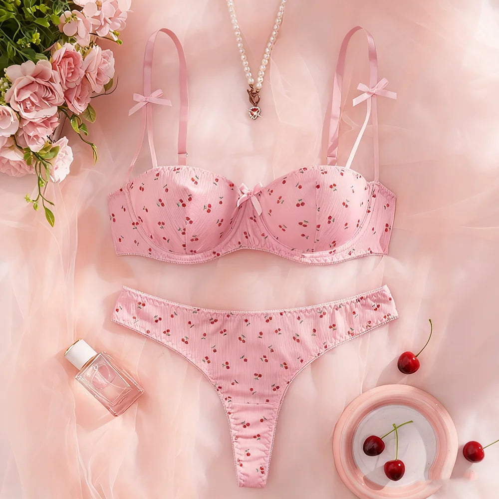 Women Sexy Bra Comfortable Pink Lingerie Bodysuits Hot Selling G-string Two Piece Set Bow Lingerie Women Sexy in Stock USA