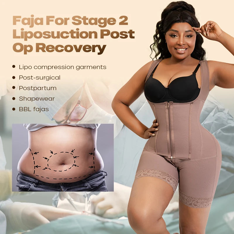 Recover with confidence in our full-body compression garment, engineered to support post-surgical healing and body contouring results. This high-compression shapewear provides gentle yet firm support across your entire frame, helping to minimize swelling and promote optimal healing after liposuction or similar procedures. The breathable, moisture-wicking fabric keeps you comfortable throughout the day, while the seamless construction ensures a smooth silhouette under any outfit. Designed with medical-grade compression technology, this garment works to enhance your investment in yourself while you heal. Reclaim your comfort and confidence during recovery.