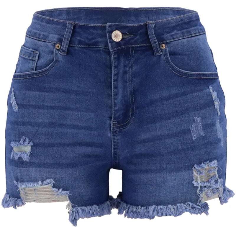 Elevate your summer wardrobe with these effortlessly chic ripped denim shorts that capture the essence of contemporary style. Featuring a flattering high-waisted cut that elongates your silhouette and provides comfortable all-day wear, these shorts combine classic denim durability with on-trend distressed detailing that turns heads. The thoughtfully placed rips create an edgy, fashion-forward aesthetic while the quality construction ensures they'll remain a go-to piece season after season. Perfect for casual outings, beach days, or laid-back weekend vibes, they pair seamlessly with crop tops, oversized tees, vintage band shirts, or your favorite sneakers. Whether you're running errands, meeting friends for coffee, or enjoying outdoor adventures, these shorts deliver effortless style without compromising on comfort. The versatile medium wash works with nearly any top in your closet, making them an investment piece that maximizes outfit possibilities. Comfortable, durable, and undeniably stylish—these ripped high-waisted denim shorts are the must-have staple every modern woman needs for a wardrobe that's both timeless and trend-conscious.