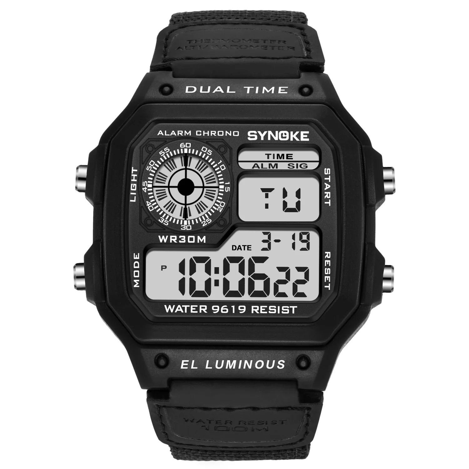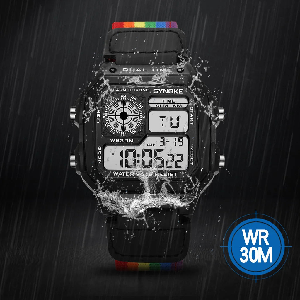 2023 New SYNOKE Watches 9619C Fashion Men's Digital Watches Calendar Alarm Multifunction Men's Watch 3ATM Waterproof RelojesYNOKE 9619 Retro electronic watch luminous and waterproof sports men's square student watch men Watch strap Relojes