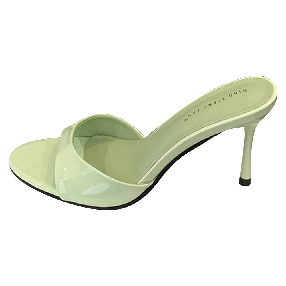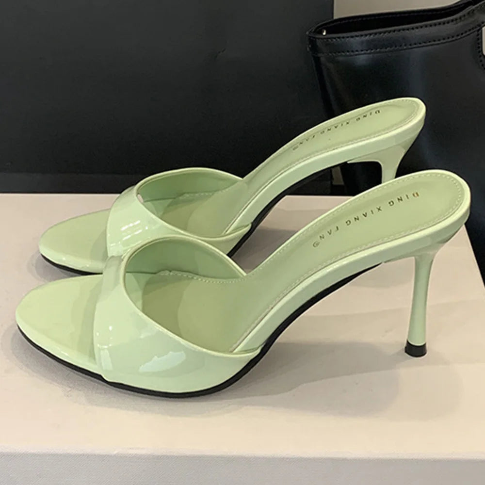 2025 Summer New Fashionable European American Thin High Heeled Sandals Slippers Green Red for Women