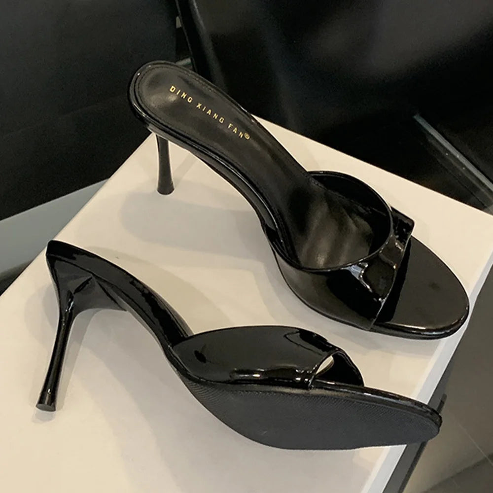 2025 Summer New Fashionable European American Thin High Heeled Sandals Slippers Green Red for Women-0