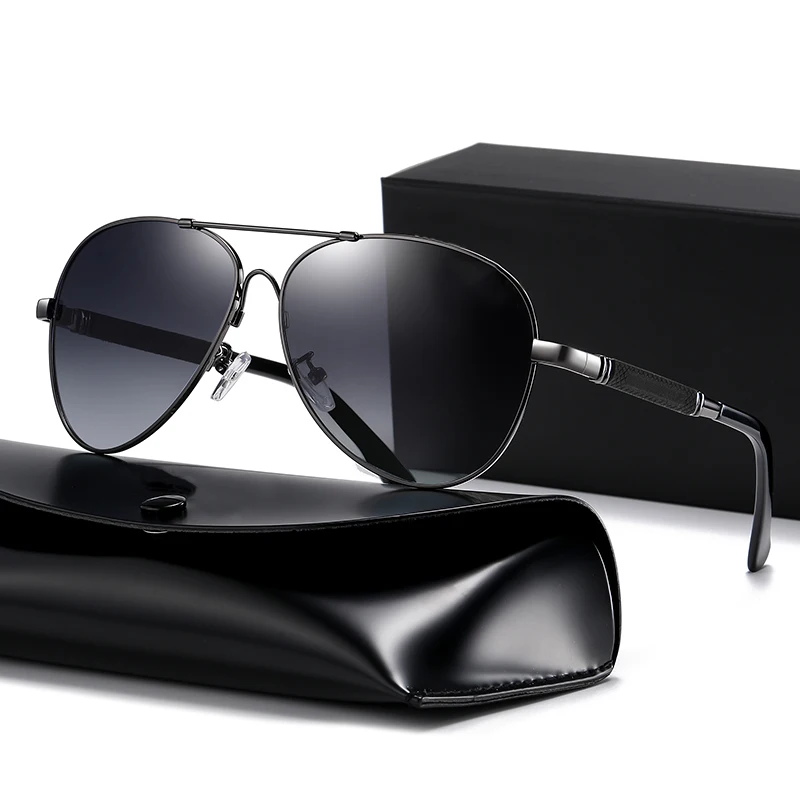 Luxury memory metal pilot women men driving night vision glasses polarized photochromic sunglasses
